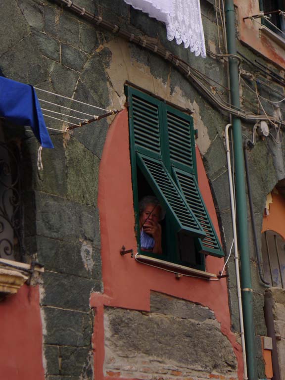Вернаца. Тази жена намръщено гледаше от прозореца си тълпите от туристи, минаващи по улицата: