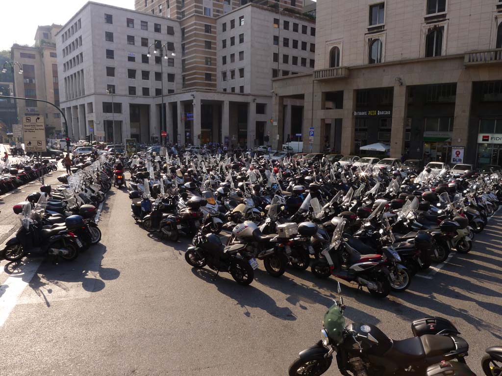 Оказа се, че Генуа е градът с най-много мотори и скутери в Италия. На места се виждаха такива паркинги: