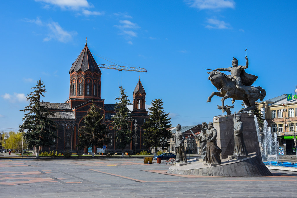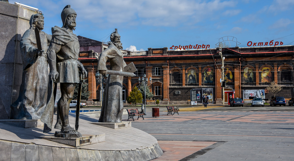 Централния площад на Гюмри беше хубаво направен. Тук освен голямата катедрала имаше и паметник, посветен на голяма битка между Арменското царство и Персийската империя.