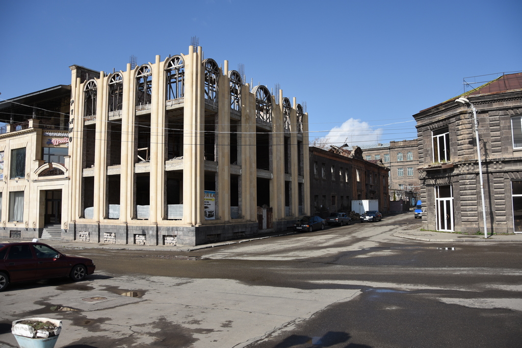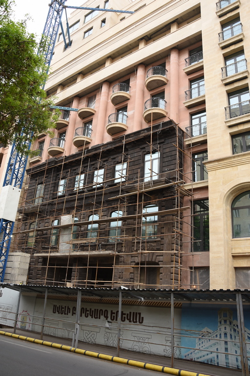 В Ереван на няколко места забелязах едно доста уродливо явление. Да се взима фасадата на стара сграда, която да се запази и към нея да се дострои модерна сграда и това да се води като реставрация предполагам. Има добри примери за подобен подход, но в случая резултатите бяха покъртителни: