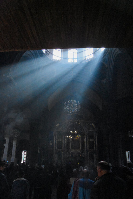 Решихме да хвърлим едно око на църквата от другата страна на площада, където в момента течеше литургия.