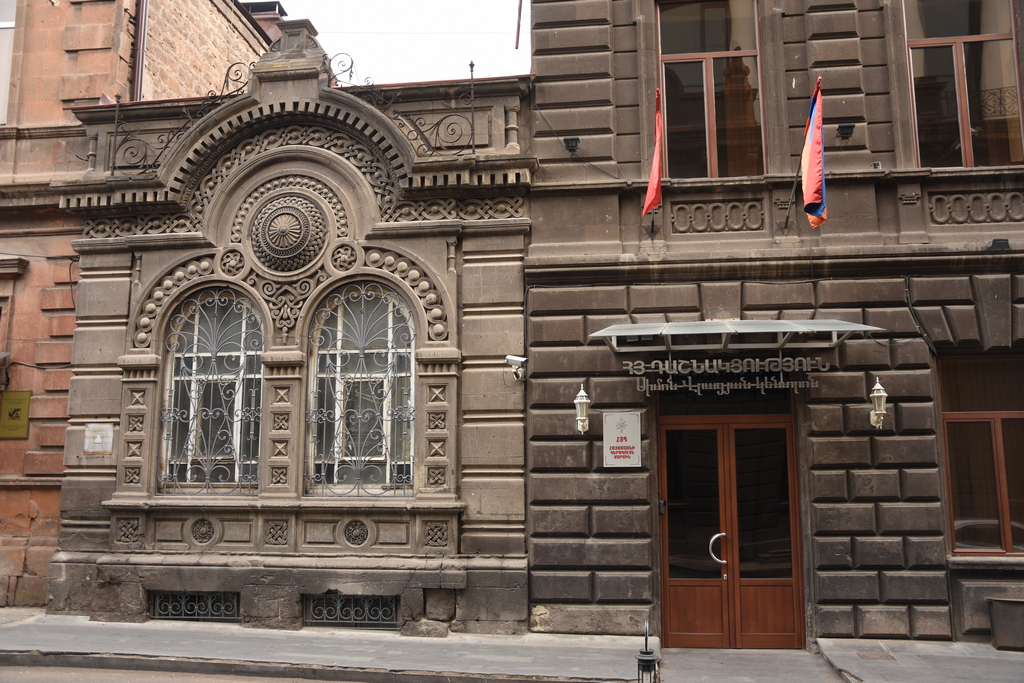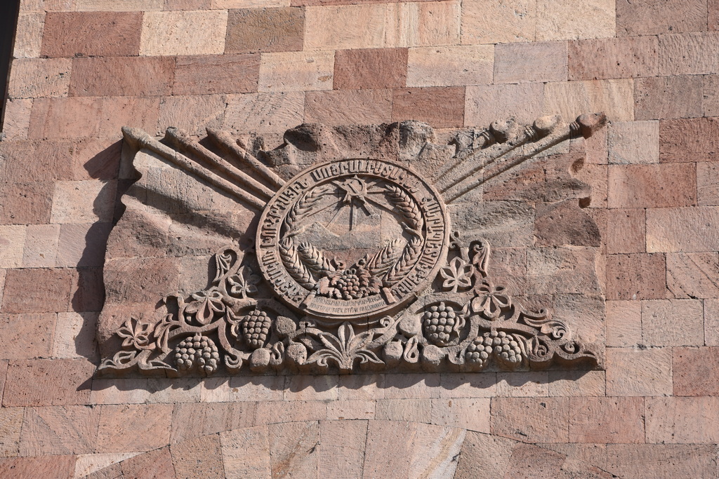 Гербът на Арменската ССР, който продължава да стои на сградата на парламента.