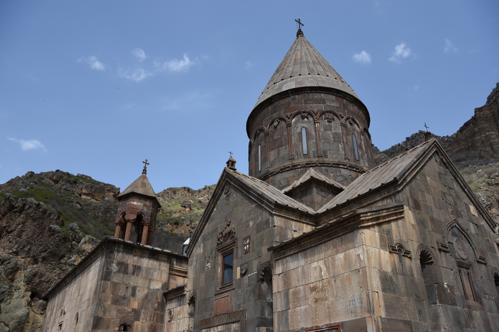 Първоначално подминахме Гарни и отидохме до по-далечния Гегхард. На паркинга отново ни поискаха 200 драма за паркирането. Почнахме да се шегуваме, че това е официалната държавна тарифа за паркинг, но майтапа настрана - всеки път като паркирахме покрай забележителности в Армения си ни искаха по 200 драма. Ни повече, ни по-малко.