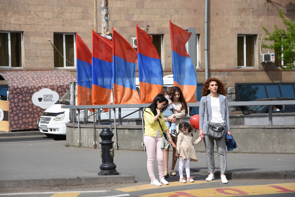 Изведнъж, връщайки се от планината по обяд видяхме, че целият град е накичен с арменски знамена. Не знаехме причината, предположихме, че има някакъв национален празник днес. Оказа се, че било заради 1-ви май.