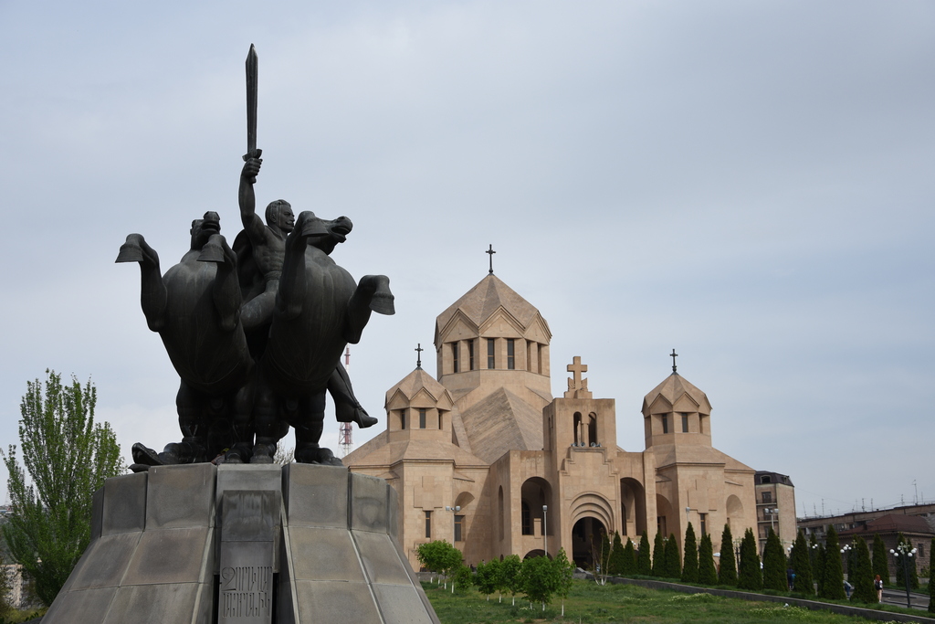Църквата, изградена в чест на 1700 години от приемането на християнството в Армения. На преден план се вижда паметник на генерал Андраник Озанян, който се възприема като национален герой на Армения. Името му е свързано и с България, тъй като той е предвождал арменска доброволческа рота през Балканската война.