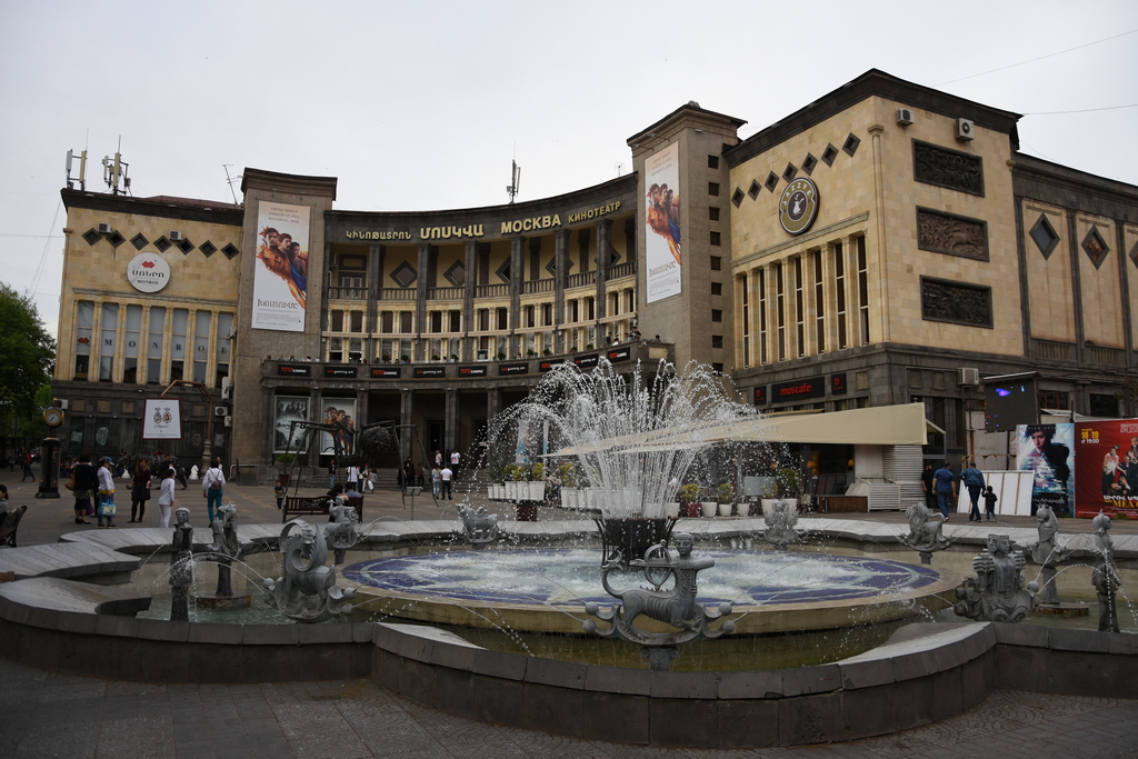 Стигнахме и до кино "Москва". Тук в миналото се е намирала най-старата църква в Ереван, но по съветско време обикновено ако е трябвала площ за някоя нова сграда се е събаряла църква, джамия и т.н.